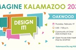Design It! Oakwood Neighborhood Meeting 19 Feb 2026 Imagine Kalamazoo 2035 is entering the Design It! phase, and this is where community ideas begin turning into real plans. Design It! meetings are open-house style and designed to be fun, fast-paced, and interactive. Residents can drop in anytime during the event to participate in hands-on activities, ask questions, and share ideas at their own pace. Community of Christ, 2523 Amherst Ave, Kalamazoo 49008 Tagged as: , Get Involved