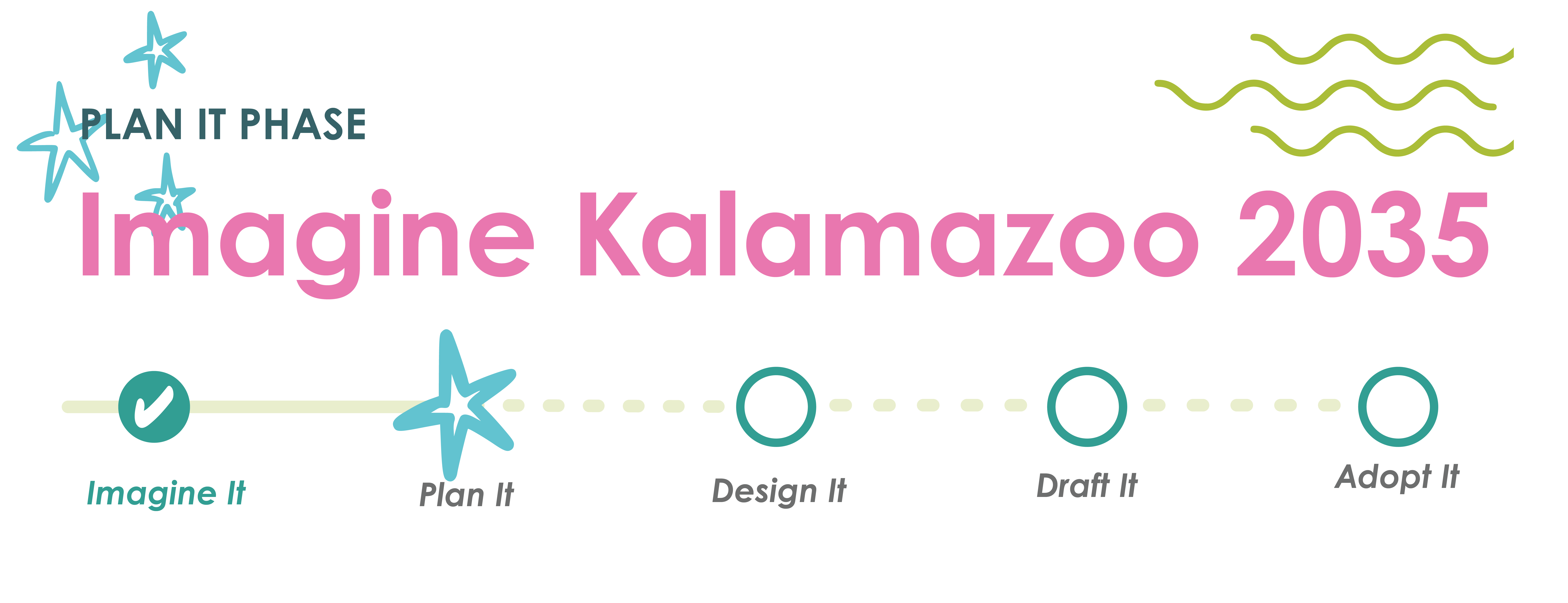 Imagine Kalamazoo Enters “Plan It!” Phase Four Meetings Scheduled After months of valuable community input during the "Imagine It!" phase, the City of Kalamazoo is now launching "Plan It!"—the next step in updating the City’s Master Plan and Strategic Vision. Four public meetings will help redefine the Strategic Vision Goals and identify the key outcomes that will guide Kalamazoo’s future.